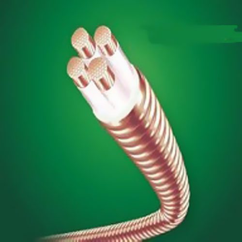 無機絕緣柔性防火電纜,歸于電纜技術(shù)領(lǐng)域。在絞合銅合金導體上設(shè)有6層云母包帶繞包耐火絕緣層,在耐火絕緣層上設(shè)有縱包、對焊的銅合金管并在銅合金管上設(shè)有非螺旋軋紋的金屬護套,在金屬護套的外外表擠包無鹵低煙聚烯烴資料的防腐護套。