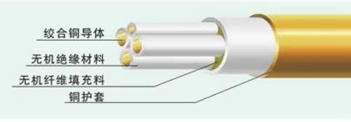 1.導(dǎo) 體:多股銅線絞合;2.絕緣層:耐高溫、不焚燒的無機(jī)絕緣資料;3.銅護(hù)套:縱包焊接并軋紋;4.外護(hù)層:低煙無鹵資料